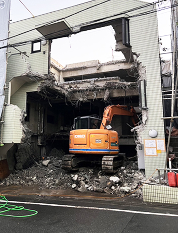 マンション・アパートなどの集合住宅や、ビルの解体工事などのご相談も有限会社明和商事では請けおっております。建造物が大型かつ強固なため木造建築より完工までにお時間を有してしまう事も御座いますが、他社にはない最適な重機器の選定と経験・実績に裏付けされた確かな技術でもって、できる限り無駄なくスピーディーに解体を執り行います。