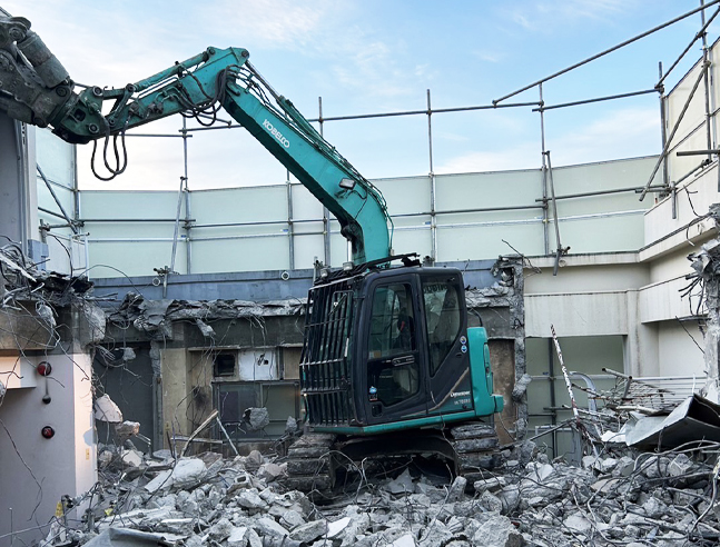 又、鉄筋コンクリートの建築物の解体時には、木造よりも粉塵の飛散や騒音の度合いが大きくなる傾向にありますが、近隣住民様、施設とのトラブル発生に最善の配慮をもって工事を進めて参ります。